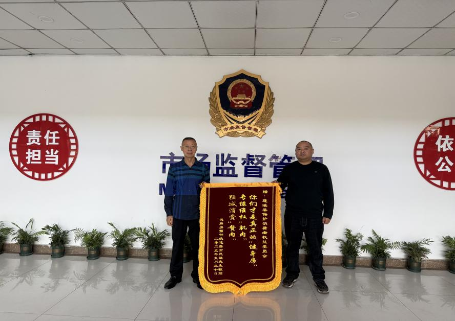 9月30日,蓬溪县一消费者敬先生为该县保护消费者权益委员会(以下简称“县消委会”)寄来一面印有“你们才是真正的‘健身房’,专练维权‘肌肉’,猛减消费‘赘肉’”字样的锦旗,感谢县消委会工作人员心系百姓、真心为群众办实事,为消费者挽回经济损失8000余元。