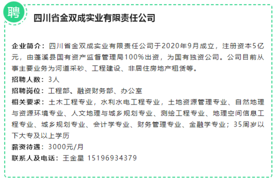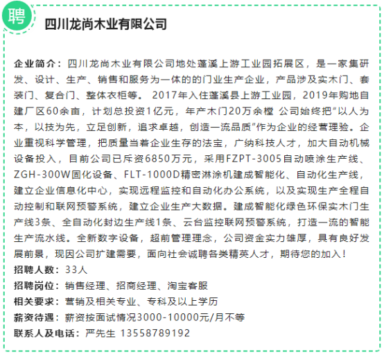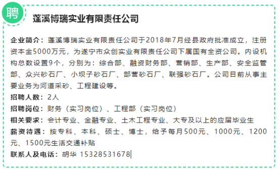 蓬溪县2022年高校毕业生招聘企业信息栏
