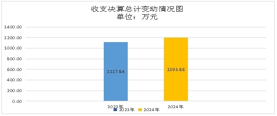 2024年度收入总计为1193.86万元、支出总计为1193.86万元。与2023年相比,收、支总计各增加76.02万元,上升6.8%。主要变动原因是增加一般公共服务支出。(图1:收、支决算总计变动情况图)