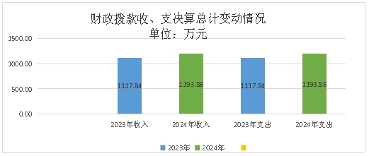 2024年财政拨款收入总计为1193.86万元、支出总计为1193.86万元。与2023年相比,财政拨款收、支总计各增加76.02万元,上升6.8%。主要变动原因是增加了一般公共服务支出。