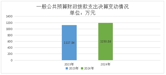 2024年一般公共预算财政拨款支出1193.86万元,占本年支出合计的100%。与2023年相比,一般公共预算财政拨款增加76.02万元,上升6.8%。主要变动原因是增加了一般公共服务支出。