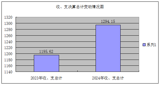 2024年度收、支总计均为1294.15万元。与2023年度相比,收、支总计各增加98.53万元,增长8.24%。主要变动原因是支付了2023年基本财力保障、2023年基层组织活动和公共服务运行经费-县级等项目资金。