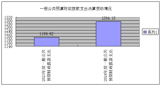 2024年度一般公共预算财政拨款支出1294.15万元,占本年支出合计的100%。与2023年度相比,一般公共预算财政拨款支出增加98.53万元,增长8.24%。主要变动原因是支付了2023年基本财力保障、2023年基层组织活动和公共服务运行经费-县级等项目资金。