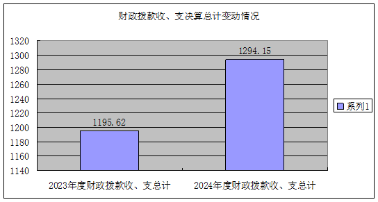 2024年度财政拨款收、支总计均为1294.15万元。与2023年度相比,财政拨款收、支总计各增加98.53万元,增长8.24%。主要变动原因是支付了2023年基本财力保障、2023年基层组织活动和公共服务运行经费-县级等项目资金。