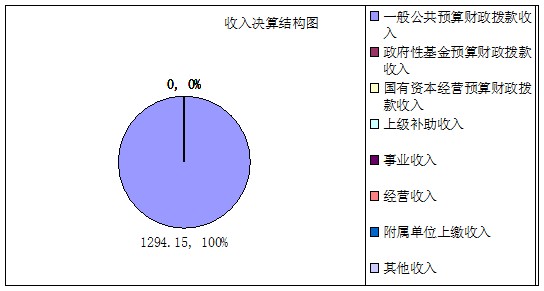 2024年度本年收入合计1294.15万元,其中:一般公共预算财政拨款收入1294.15万元,占100%;政府性基金预算财政拨款收入0万元,占0%;国有资本经营预算财政拨款收入0万元,占0%;上级补助收入0万元,占0%;事业收入0万元,占0%;经营收入0万元,占0%;附属单位上缴收入0万元,占0%;其他收入0万元,占0%。