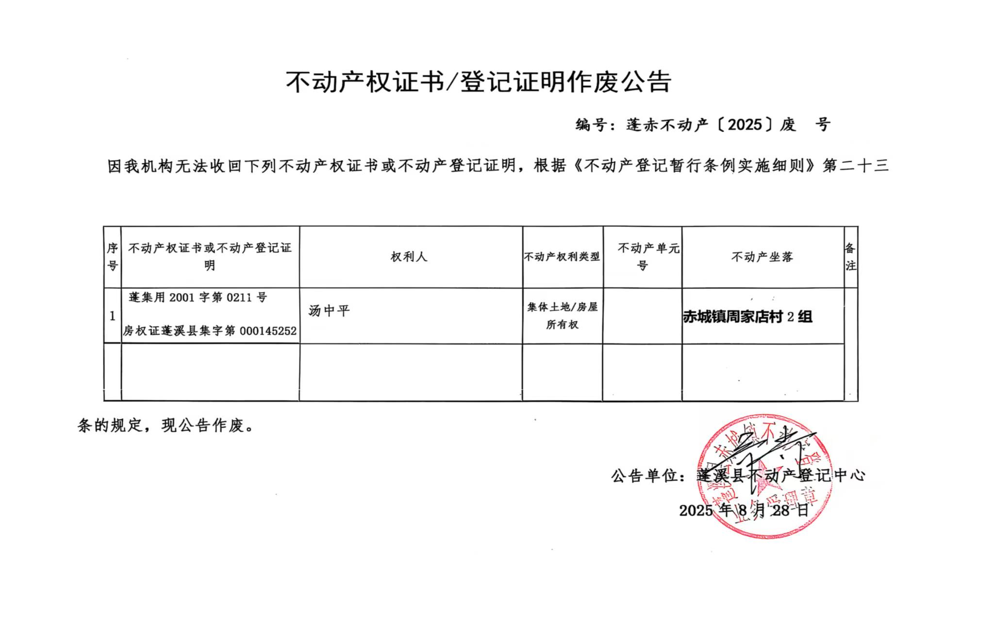 作废公告(汤中平)