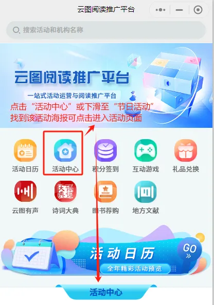 扫描“云图阅读推广平台”二维码或直接搜索该小程序名称参与。进入活动页面,点击“我要报名”,选择“蓬溪县图书馆”,填写相关信息后上传作品,并填写作品名称及简要说明,点击“确认进行发布”,待工作人员审核通过后即可分享作品邀请他人为你点赞。