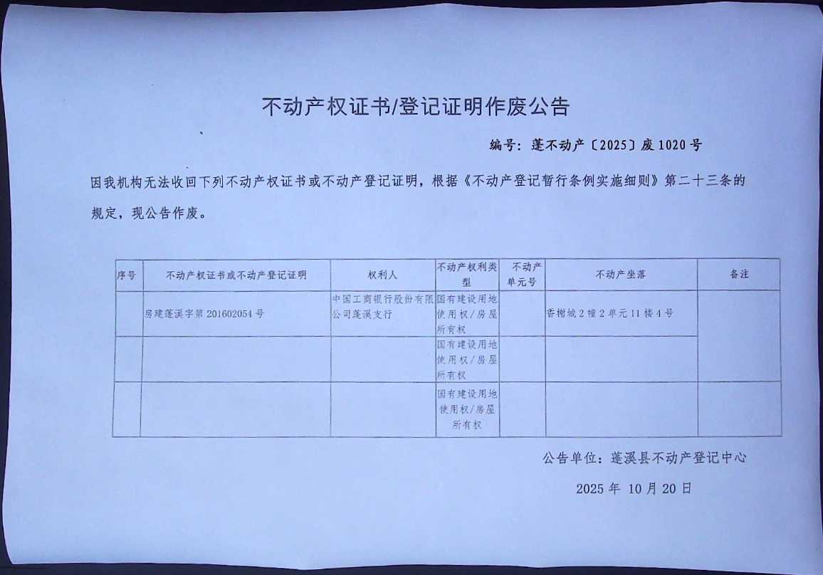作废登记公告