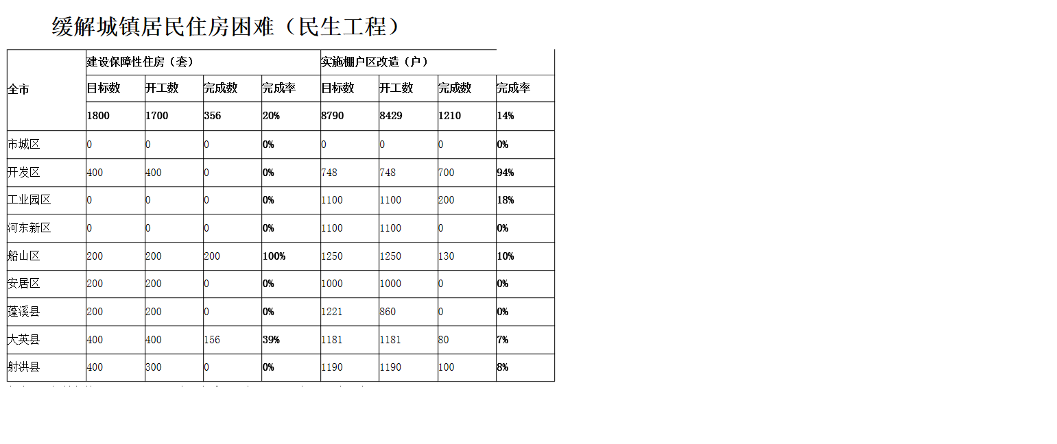 缓解城镇居民住房困难(民生工程)开工及完成情况