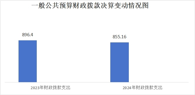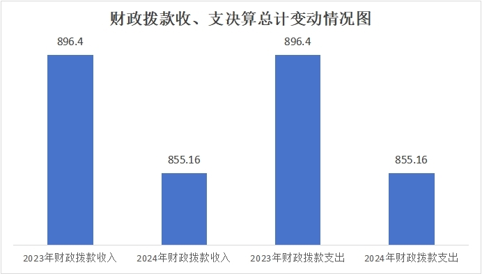 2024年度财政拨款收、支总计均为855.16万元。与2023年度相比,财政拨款收、支总计各减少41.24万元,下降4.60%。主要变动原因是2023年基本公用经费支出未完成支付。