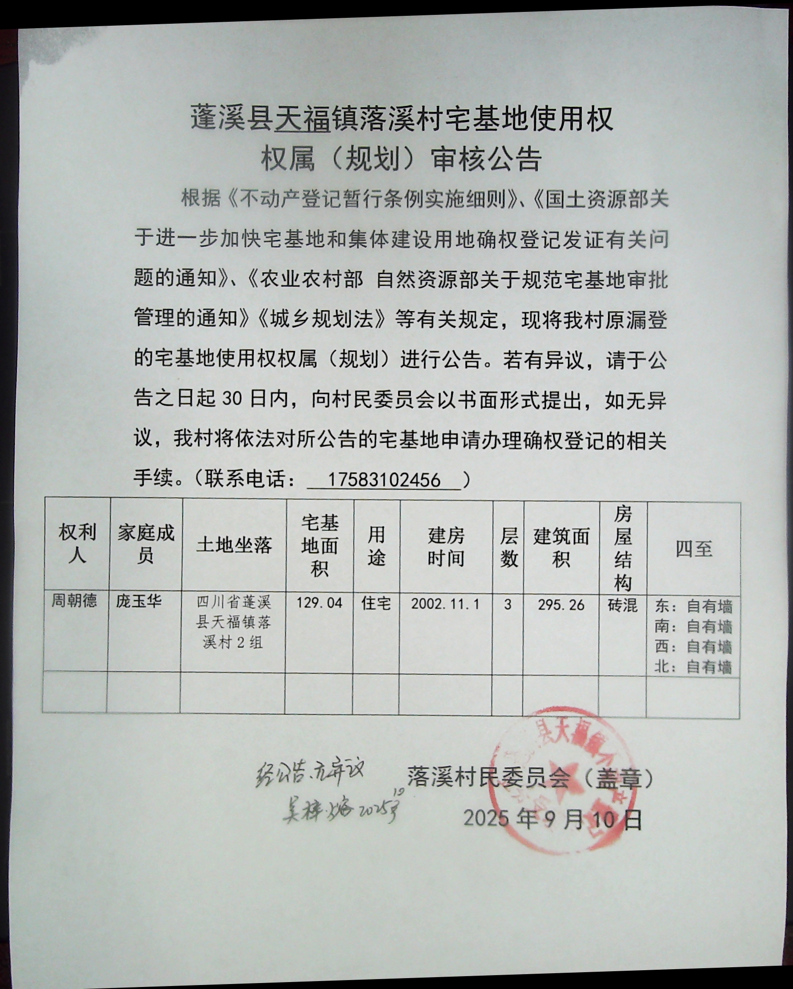 审核登记公告(周朝德)
