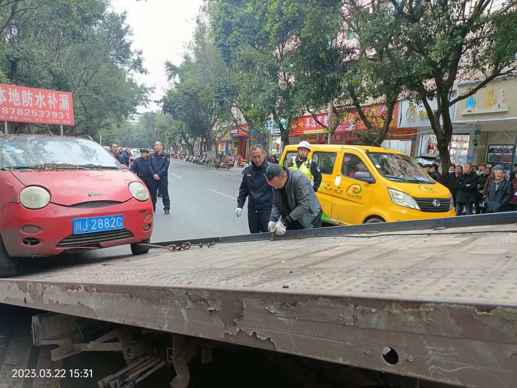 3月22日,县综合执法局和县公安局交警大队联动开展废弃机动车专项清理,整治清理中河街内长期占用公共区域的废弃车辆,此次行动共出动执法车3辆,执法人员7名,清理废弃机动车3辆。下一步县综合执法局还将对县区内所有街道“轮胎干瘪无法行驶、机动车无牌或号牌缺失、车辆外观严重破损”等车辆进行全面排查,对长时间占用公共停车位的废旧机动车将联合交警大队统一拖离,集中处理。