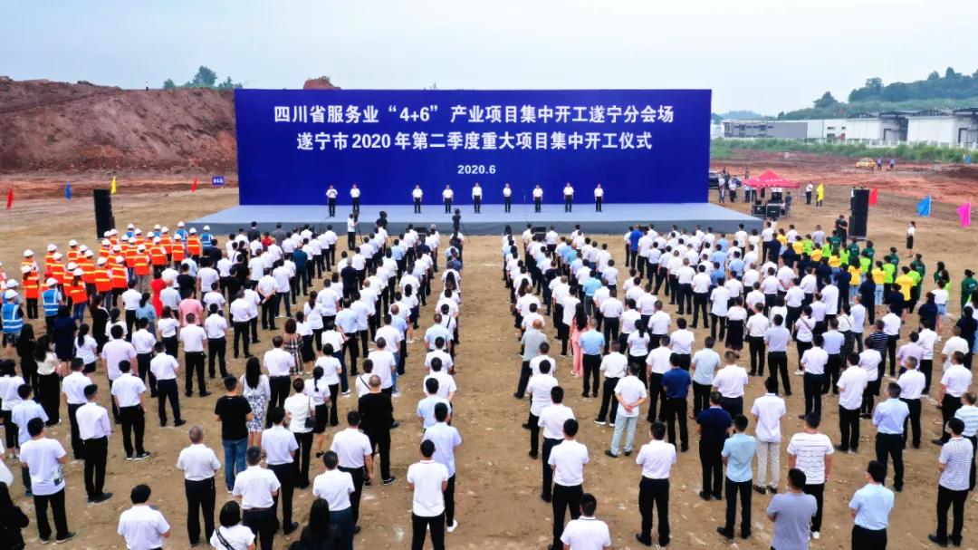 6月19日,四川省服务业"4+6"产业项目集中开工遂宁分会场暨遂宁市2020年第二季度重大项目集中开工仪式在我县经开区上游片区举行。市委书记邵革军出席并宣布开工。市人大常委会主任刘云,市政协主席刘德福及市领导吴相洪、赵京东、张峰、付勇等出席开工仪式。县委书记张智勇在开工仪式上作发言,县委副书记、县长黄亚军,县人大常委会主任黄元章,县政协主席张璋等县领导参加开工仪式。开工仪式由市委常委、副市长张峰主持。