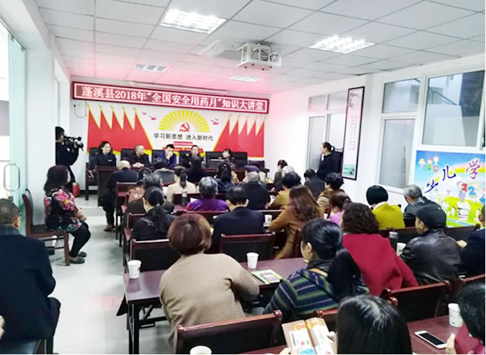 为加强老人对药品安全知识的了解,提高安全用药意识和自我保护能力,2018年11月2日,蓬溪县食药安办、县食药监局联合赤城镇人民政府在南北街社区开展“安全用药 共享健康”知识大讲堂暨百姓安全用药公益知识培训活动,活动现场共有社区居民70余人参加。