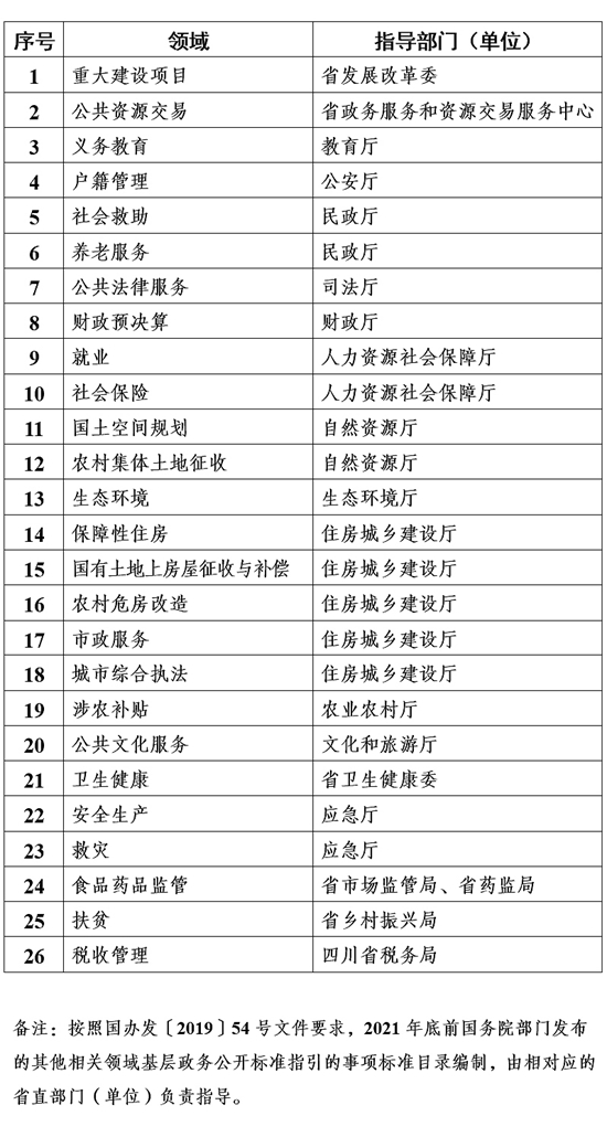 (二)深化重点领域信息公开,促进基层政府管理能力提升。根据基层政务公开标准指引,结合权责清单和公共服务事项清单,对县级政府和部门、乡镇(街道)政务公开事项进行跟踪评估、调整完善,形成符合自身实际的政务公开事项标准目录,并统一向社会发布。系统梳理并主动公开本地行政规范性文件、五年规划纲要及实施措施、发展现代产业、推进乡村振兴、惠民惠农惠企政策和资金发放信息。深化行政执法公示,根据事权和职能,公开执法部门职责权限、执法依据、裁量基准、执法流程、执法结果等,进一步促进执法公平公正。依法发布地震地质灾害等预警及风险监测信息,及时公开安全生产及检查抽查、防灾减灾救灾、应急救援提示及防范应对等信息,做好常态化疫情防控信息公开,不断提升应急管理能力。