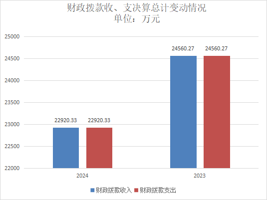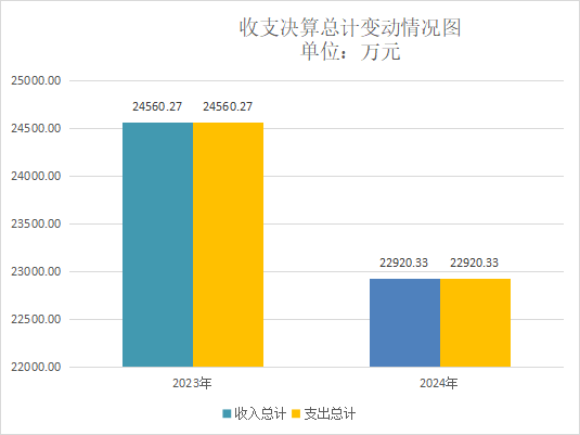 2024年度收入总计22920.33万元,支出总计22920.33万元。与2023年相比,收、支总计各减少1639.94万元,减少6.67%,主要原因是政府性基金预算财政拨款收入支出减少(图1:收、支决算总计变动情况图)