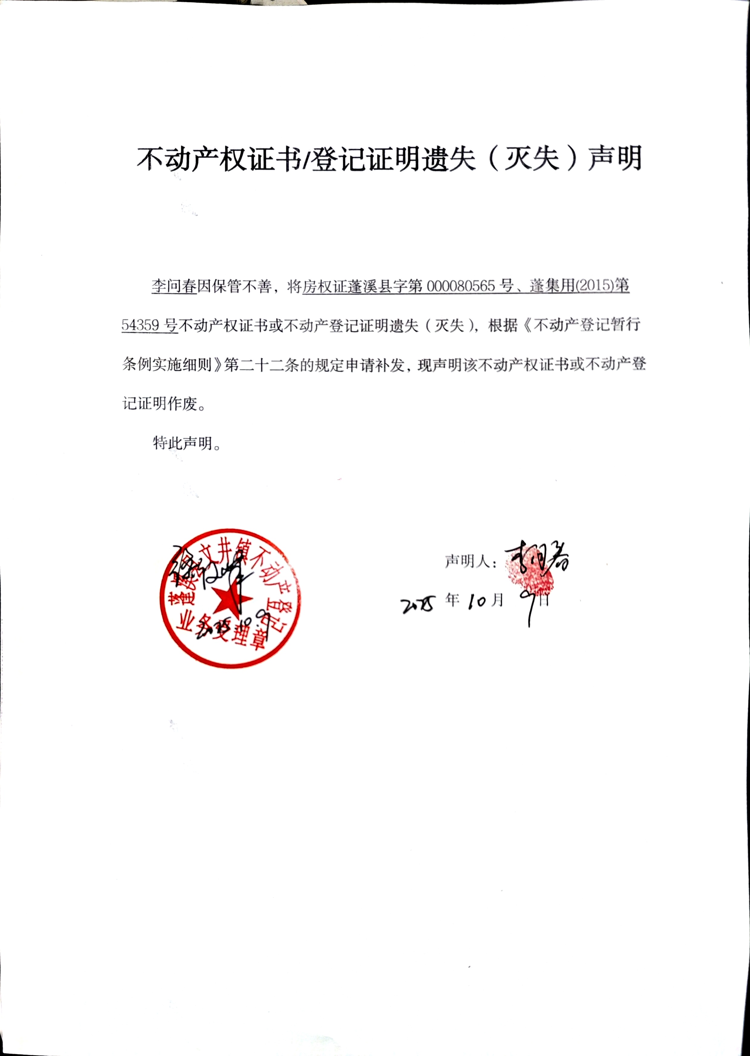 来源:蓬溪县不动产登记中心