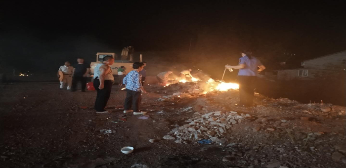 夜班巡查人员现场制止露天焚烧行为,扑灭明火