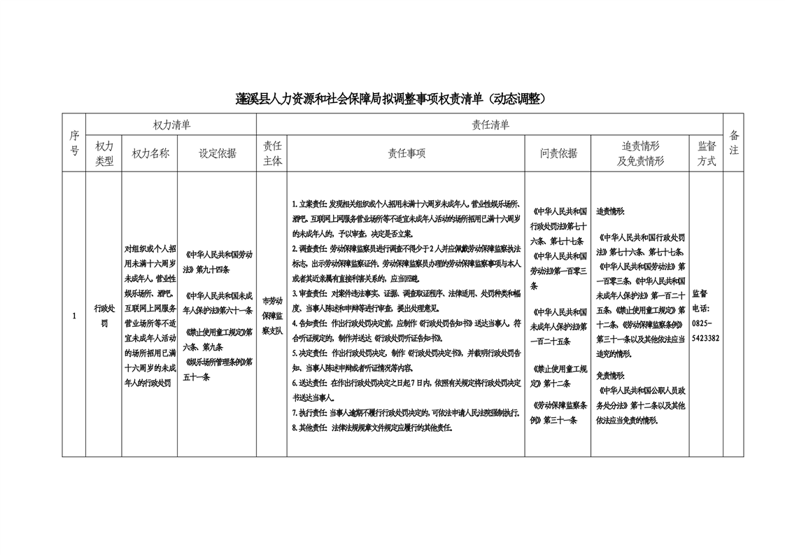 蓬溪县人力资源和社会保障局拟调整事项权责清单(动态调整)