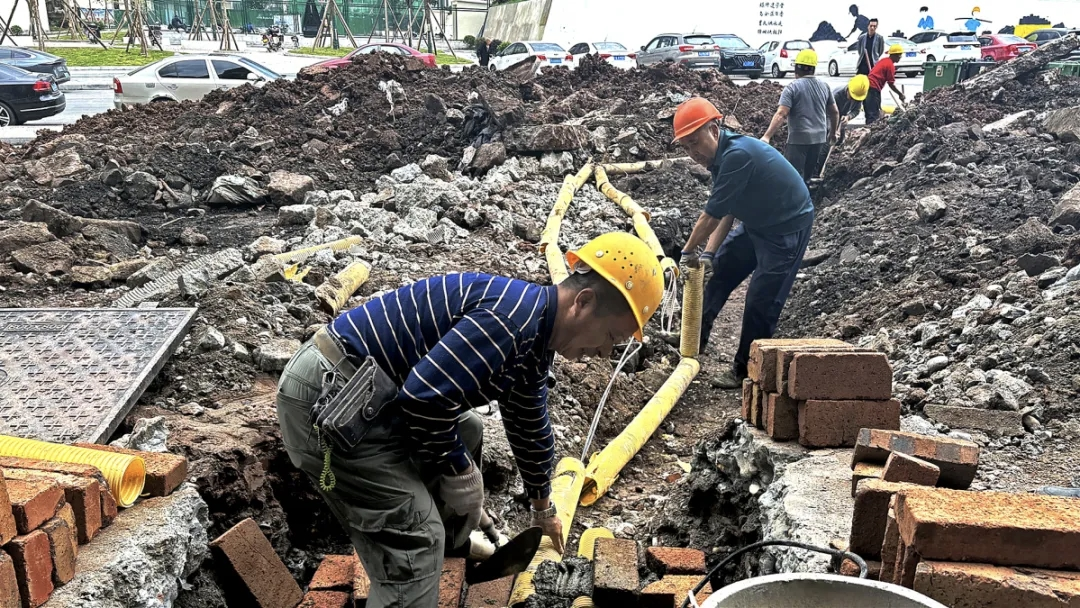 映月小区紧张有序地进行雨污水管道和弱电管线的预埋作业,已完成花坛拆除、地面破碎修补及雨水沟砌筑等前期工作。将开展铺地面、划车位、装路灯和健身器材等收尾工作了,预计在11月底完工并投入使用。