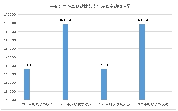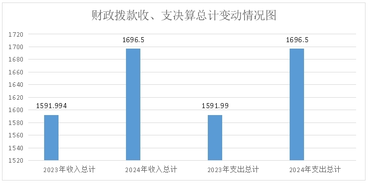 2024年度财政拨款收、支总计均为1696.50万元。与2023年度相比,财政拨款收、支总计各增加104.51万元,增长6.56%。主要变动原因是年度人员变化、年终绩效考核经费、增资、调资等费用增加。