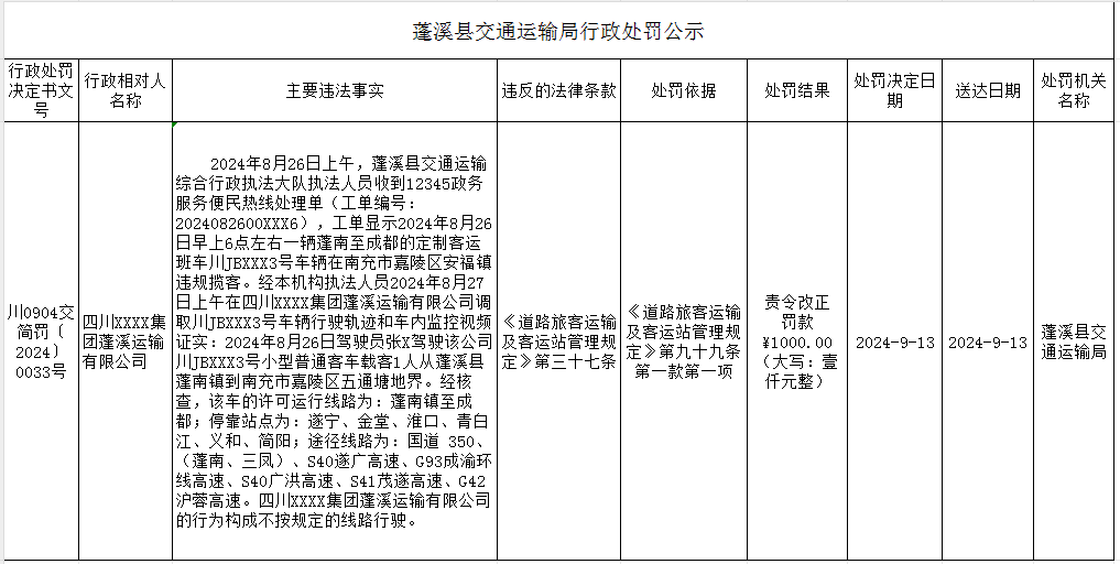 蓬溪县交通运输局行政处罚公示