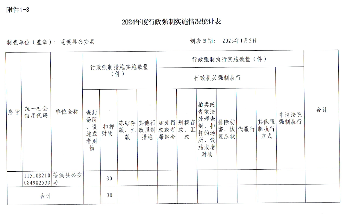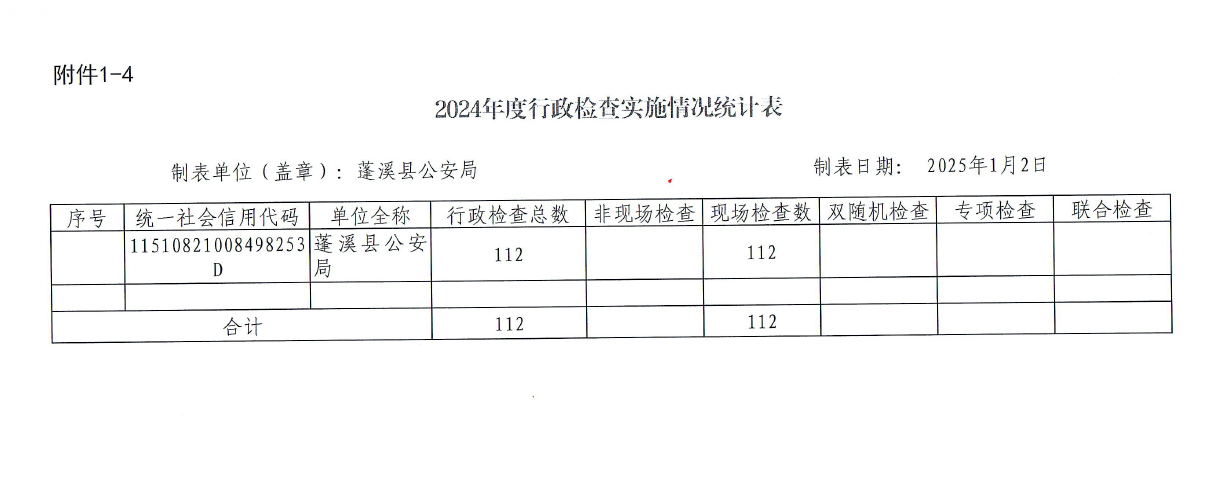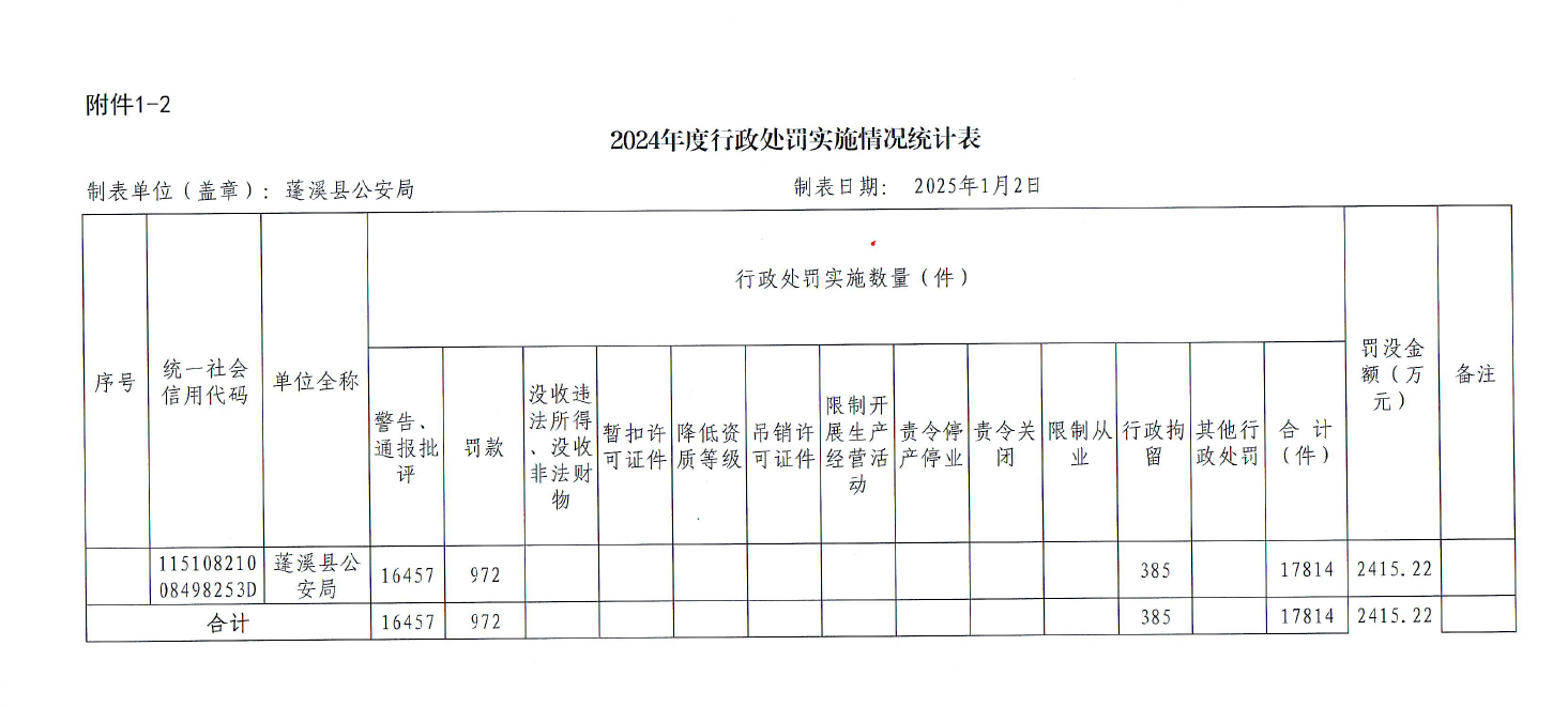 蓬溪县公安局2024年度行政执法及行政执法监督情况统计表