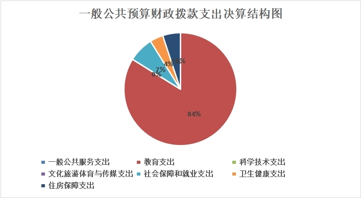 2024年度一般公共预算财政拨款支出1372.41万元,主要用于以下方面:一般公共服务支出0万元,占0%;教育支出1151.31万元,占83.89%;科学技术支出0万元,占0%;文化旅游体育与传媒支出0万元,占0%;社会保障和就业支出99.20万元,占7.23%;卫生健康支出52.45万元,占3.82%;住房保障支出69.46万元,占5.06%。
