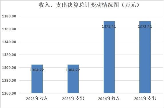 2024年度财政拨款收、支总计均为1372.41万元。与2023年相比,财政拨款收、支总计各增加67.69万元,增长5.19%。