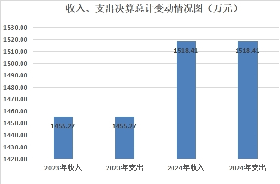 2024年度收、支总计1518.41万元。与2023年相比,收、支总计各增加63.14万元,增加4.34%。