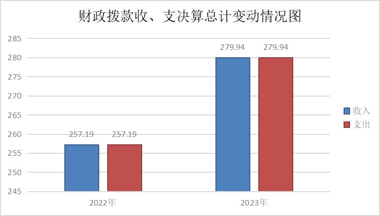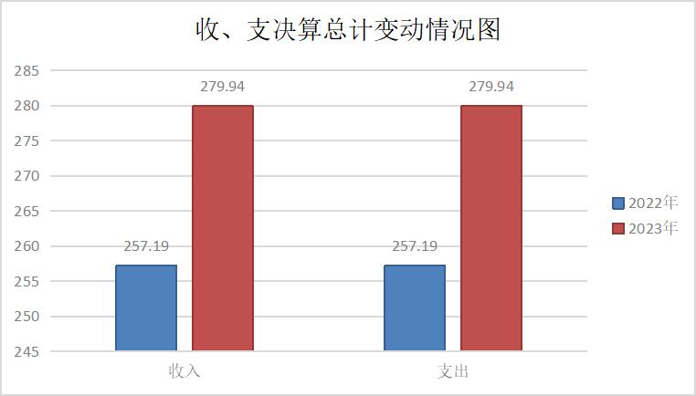 2023年度收入总计279.94万元,支出总计279.94万元。与2023年相比,收入增加22.75万元,上升8.1%,支出增加22.75万元,上升8.1%。
