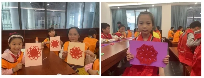 市民中心的非遗馆参观与剪纸手工课相结合的研学课程,不仅让同学们深入地了解了家乡蓬溪的非遗文化,而且让学生通过非遗课堂,亲手制作剪纸作品,深刻体验了非遗传统文化的魅力与精髓。