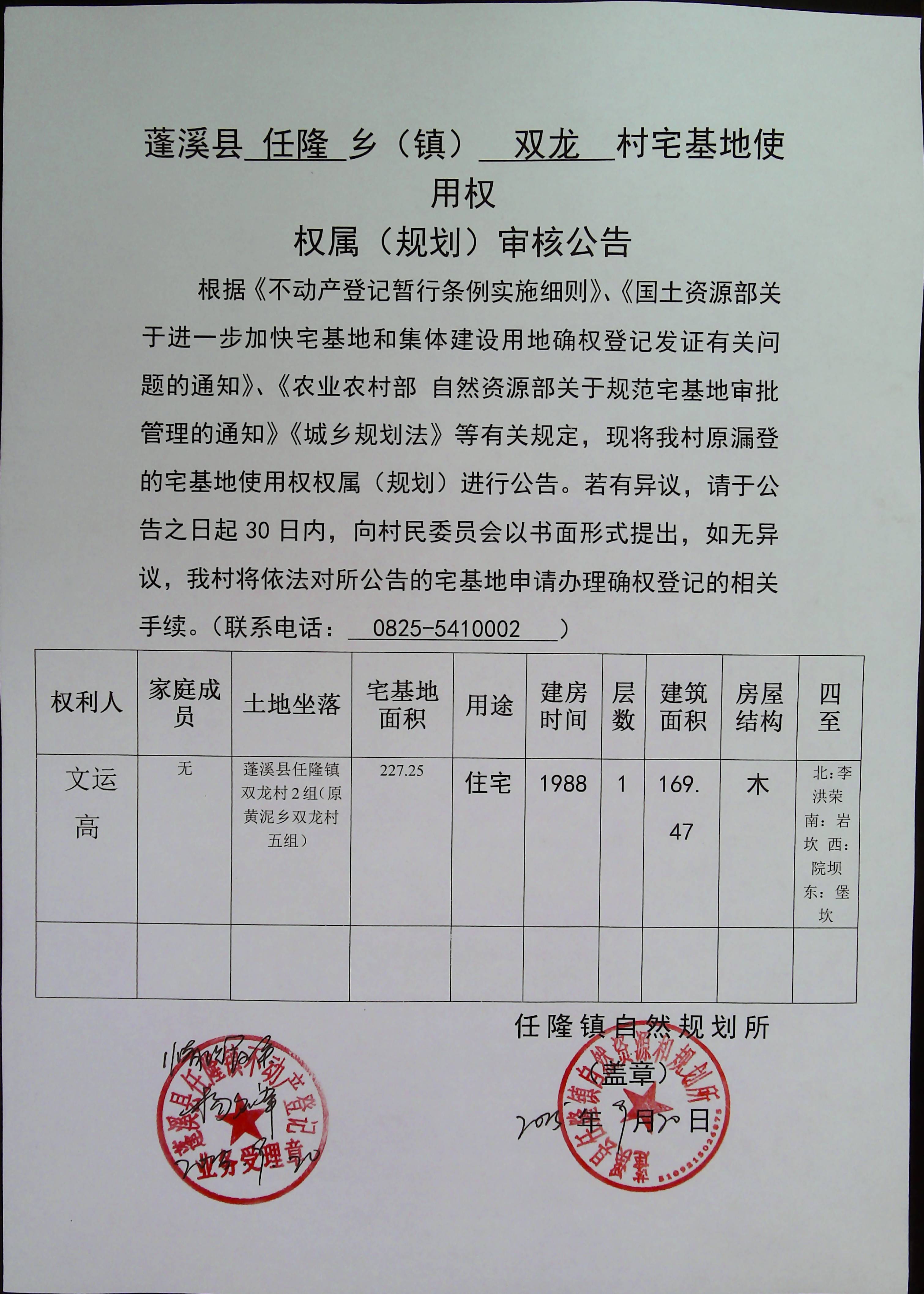 审核登记公告(文运高)