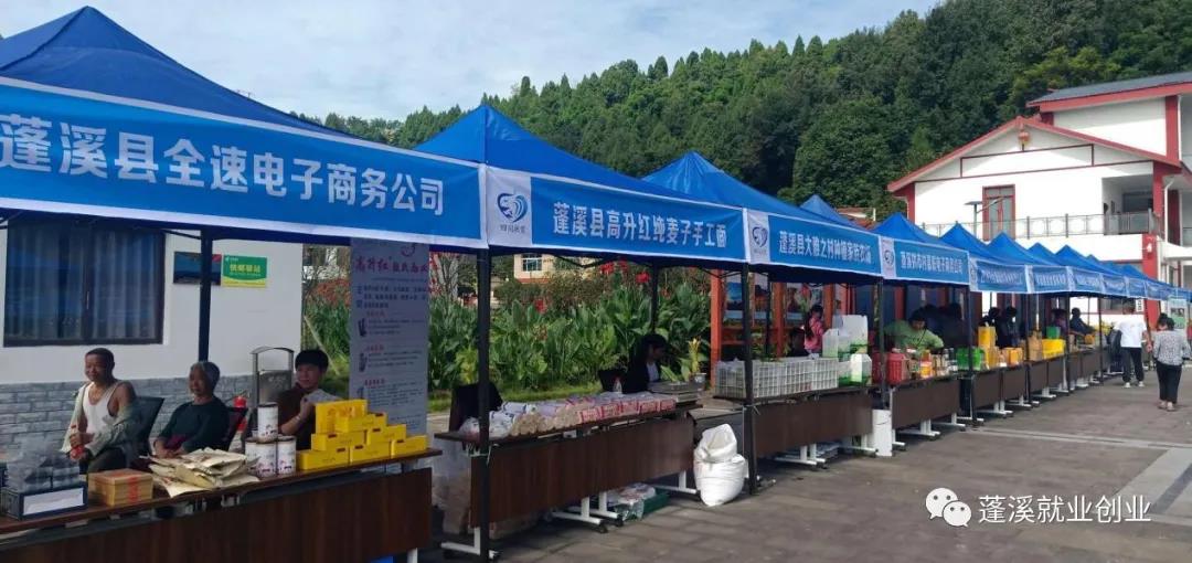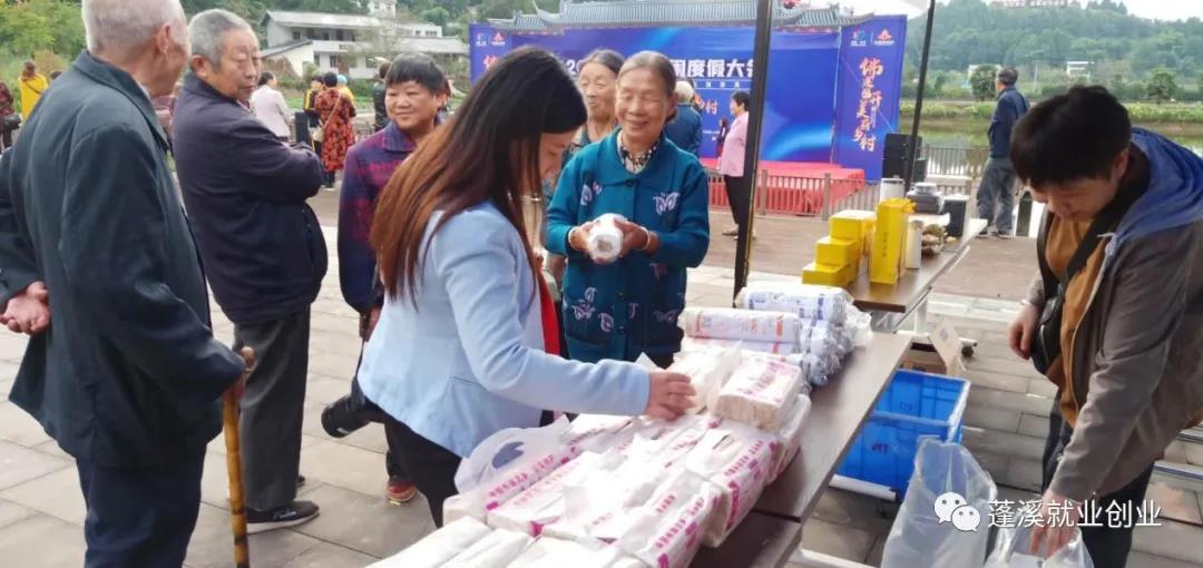 2020年9月23日在蓬溪县常乐镇拱市村举办了2020年中国休闲度假大会开幕仪式,并在现场开展“四川扶贫”产品展销活动。展销活动共设有展示、互动、展销和服务四个环节,共30个展位,展示蓬溪县特色的农产品琳琅满目,吸引了众多老百姓前来“赶集”。
