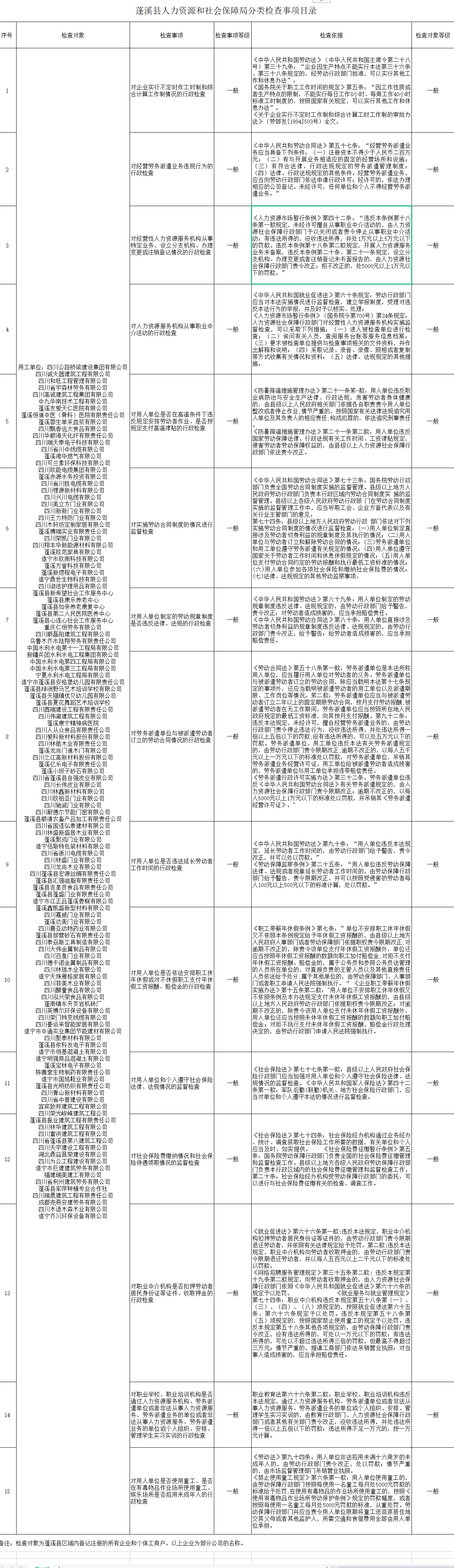 蓬溪县人力资源和社会保障局分类检查事项目录