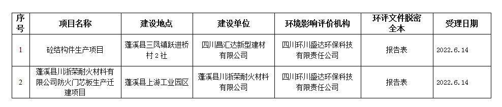 根据建设项目环境影响评价审批程序的有关规定,2022年6月14日我局受理2个建设项目环境影响评价文件。现将受理情况予以公告。如有建议意见,请于2022年6月20日(五个工作日)前向我局提出。