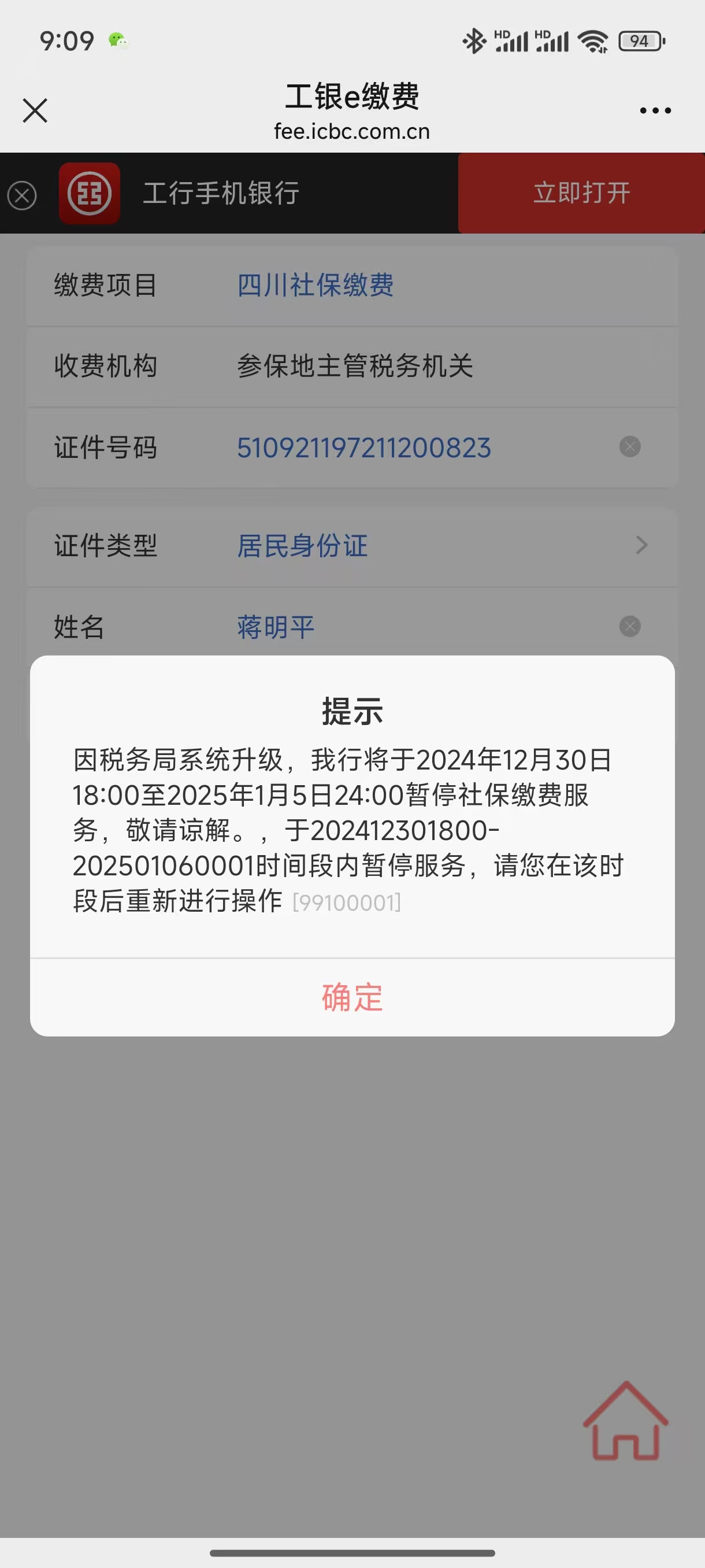 2024年12月31日,登录四川税务进行缴纳2024年度个人灵活就业养老保险;但是,在登录缴费过程中告知税务局系统升级,升级时间为2024年12月31日至2025年1月6日,需要2025年1月6日才能正常登录缴费,导致2024年个人灵活就业养老保险不能在12月31日前正常缴纳;