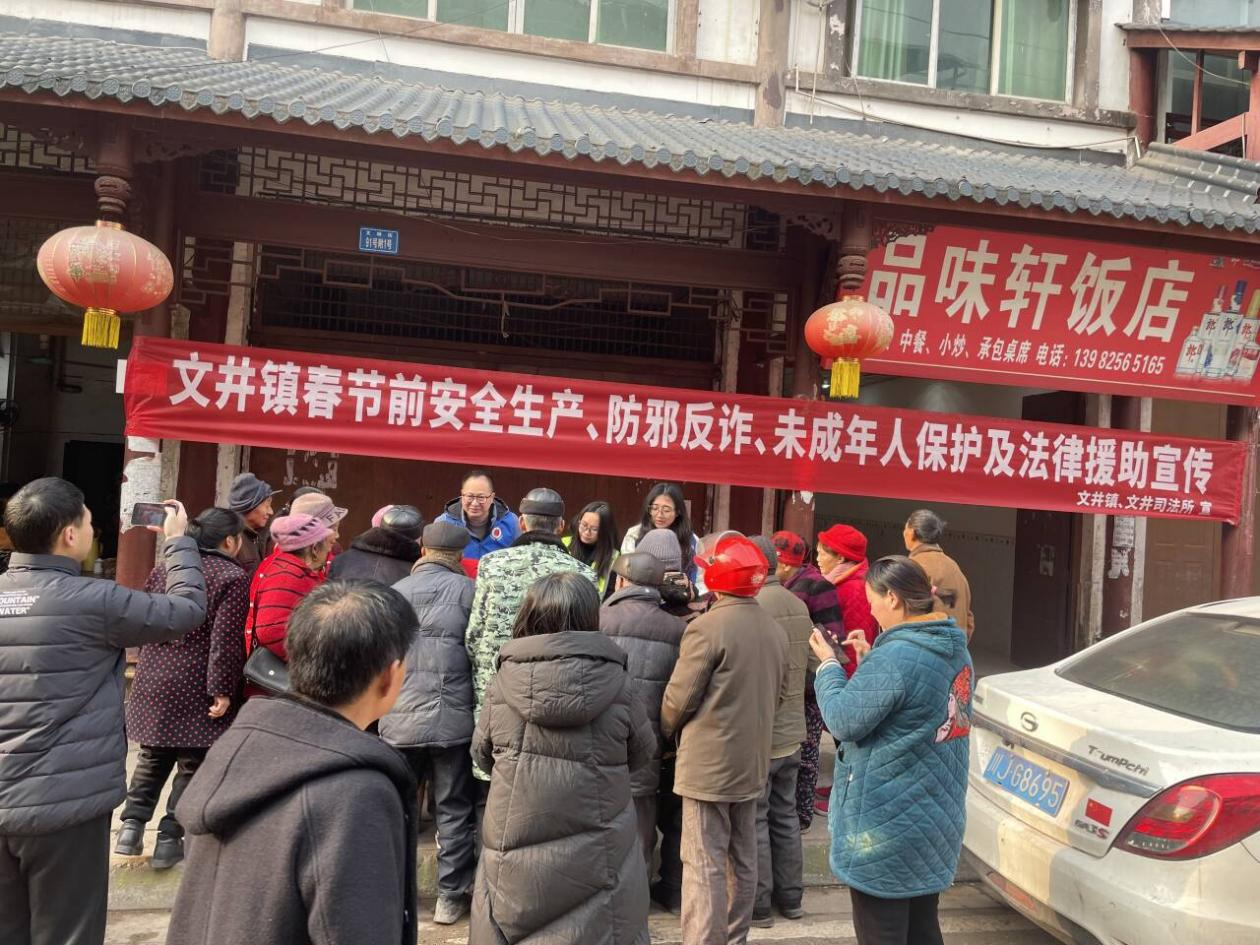 2025年春节将至,为营造平安喜庆的节日氛围,丰富群众法治文化生活,增强群众法治观念。1月20日文井镇社会治安综合治理中心联合文井司法所、宣传文化中心开展以“安全生产、防邪反诈、未成年人保护和法律援助”为主题的普法宣传活动,通过“入户宣传+展台宣讲”的形式,为群众送去了“法治年货”。