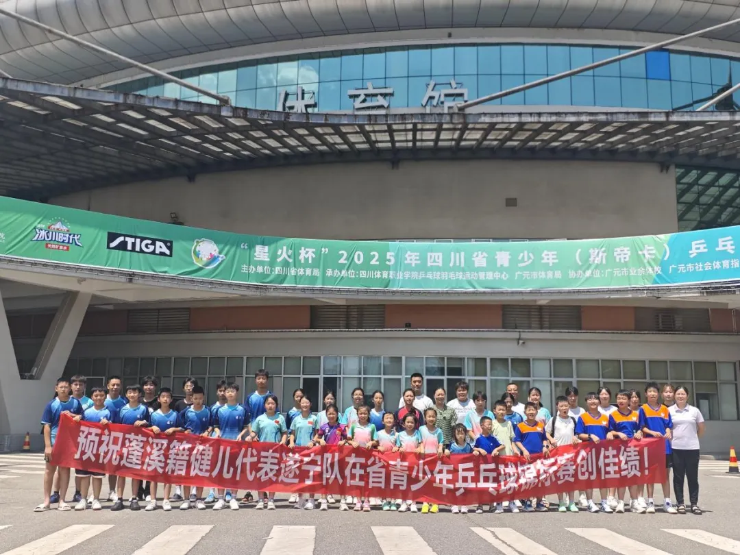 7月24日至8月4日,“星火杯” 2025 年四川省青少年(斯帝卡)乒乓球锦标赛在广元市澳源体育中心成功举办。此次赛事由四川省体育局主办,来自全省各市(州)的42支代表队1351 名青少年选手同场竞技,其中遂宁市代表队的蓬溪籍小将们在比赛中表现抢眼。