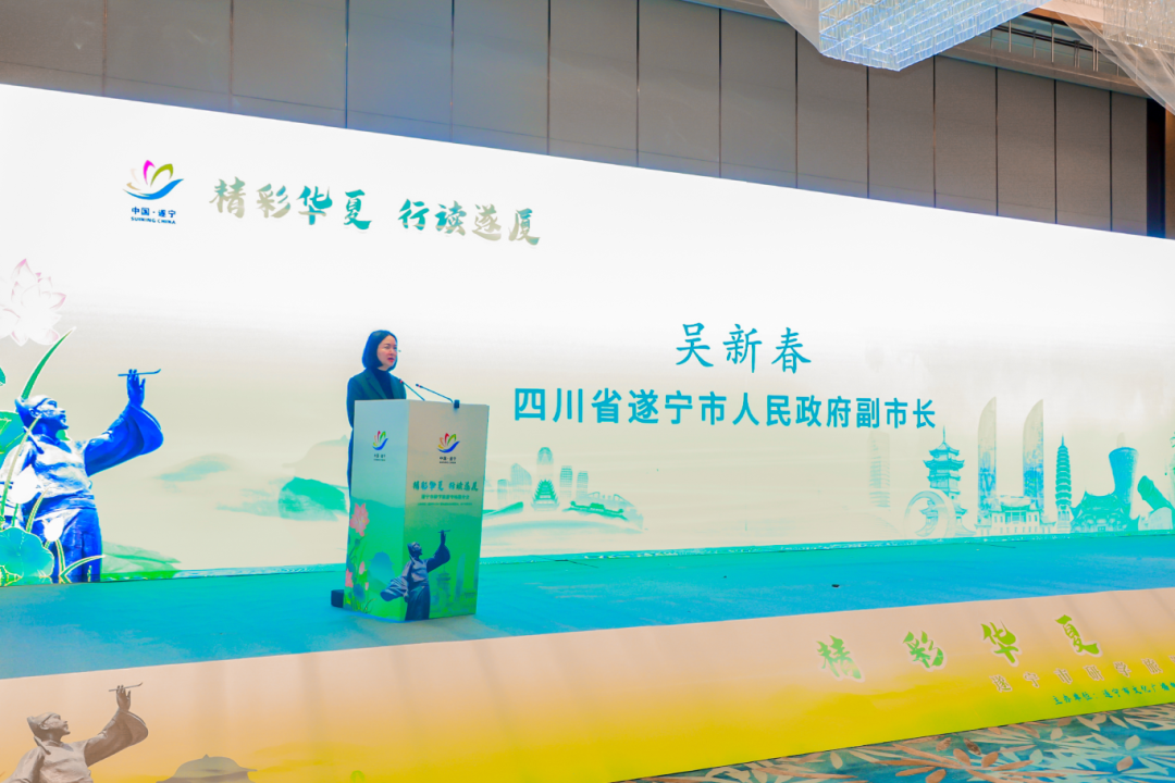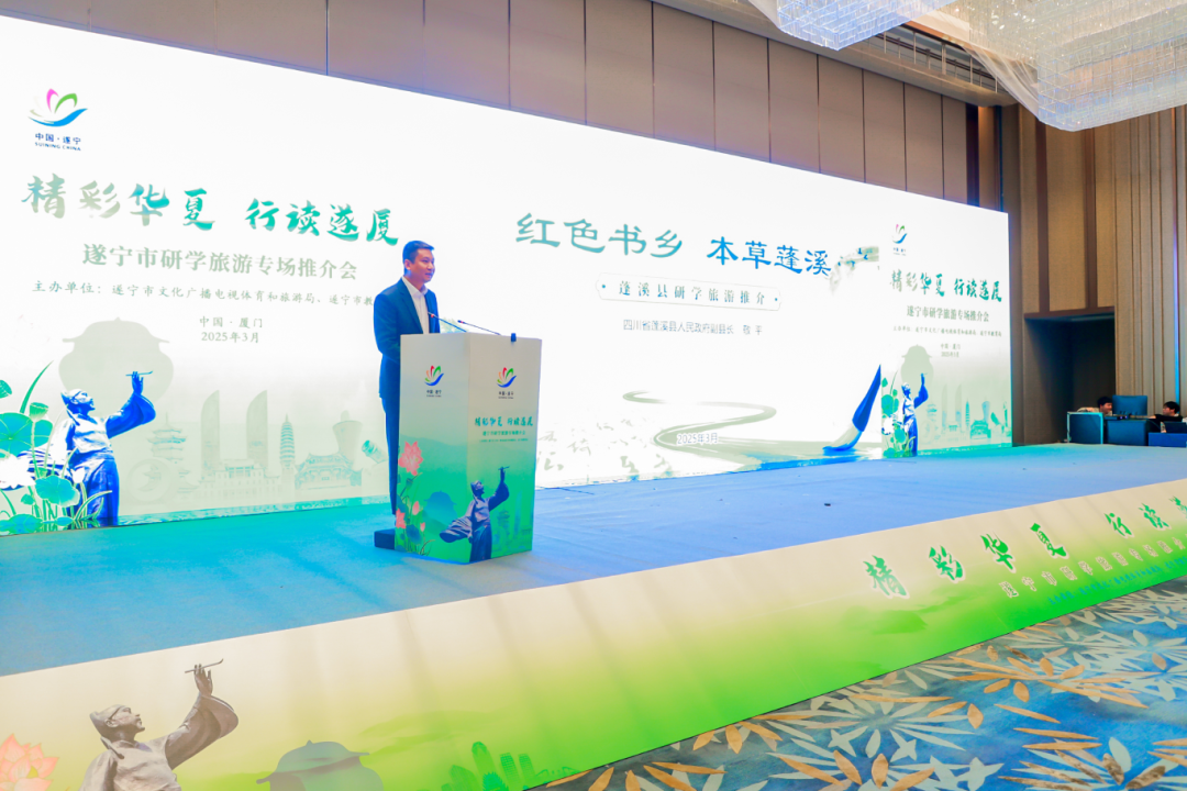 推介会上,我县以“红色书乡 研学蓬溪”为主题,向与会嘉宾展示了蓬溪特色旅游产品、研学旅游基地及研学特色课程。
