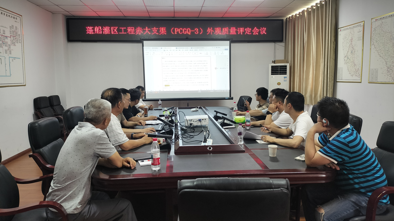 会议成立了外观质量评定工作组,由蓬灌局建设管理科科长罗龙任组长,各参会单位代表为成员,负责本次外观质量评定工作。评定工作组依据相关规程规范要求开展赤大支渠(PCGQ-3)单位工程外观质量评定工作,听取参建单位关于工程外观质量的汇报,全面检查工程现场,抽查不少于25%检查、检测项目,每项检测(检查)点数不少于10点,查阅相关工程档案资料,讨论并通过赤大支渠(PCGQ-3)外观质量评定书。