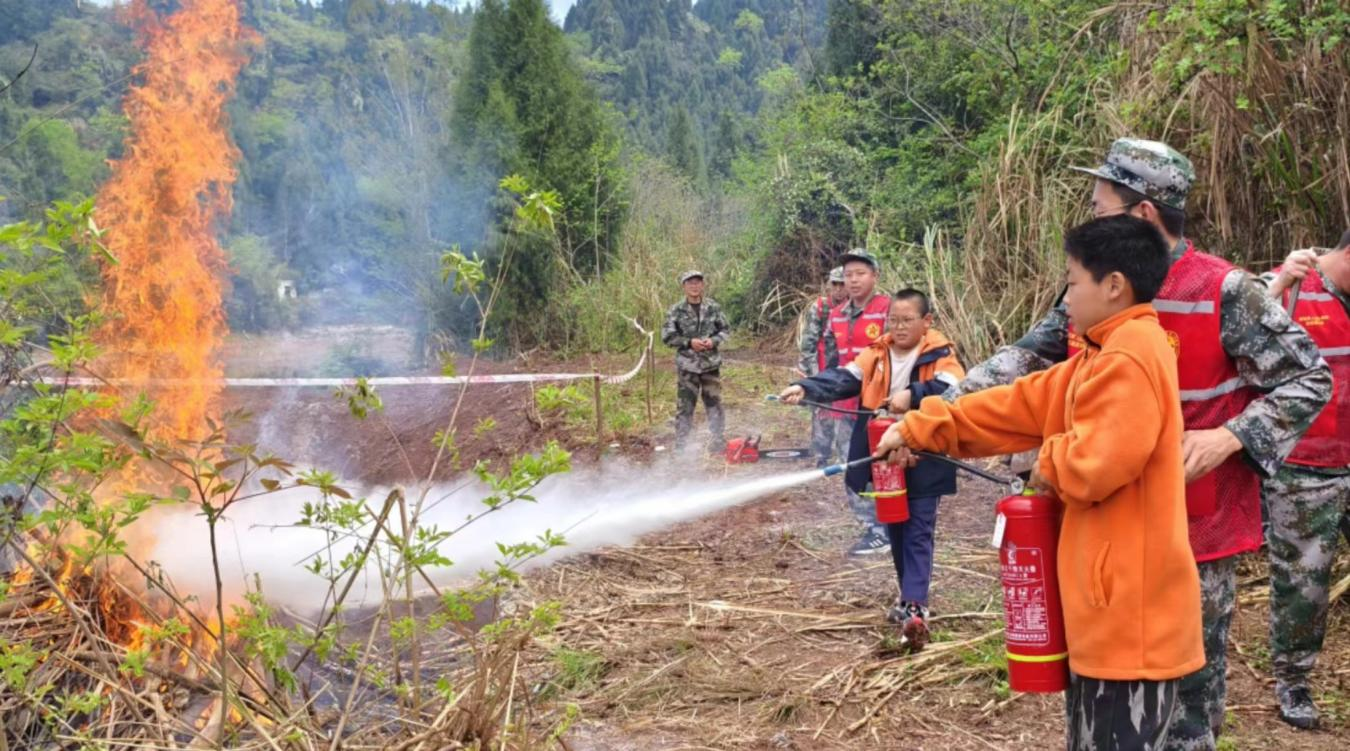 宝梵镇新时代文明实践所联合辖区派出所民警、镇退役军人(民兵)、镇卫生院、龙洞学校开展森林防灭火应急演练(一)
