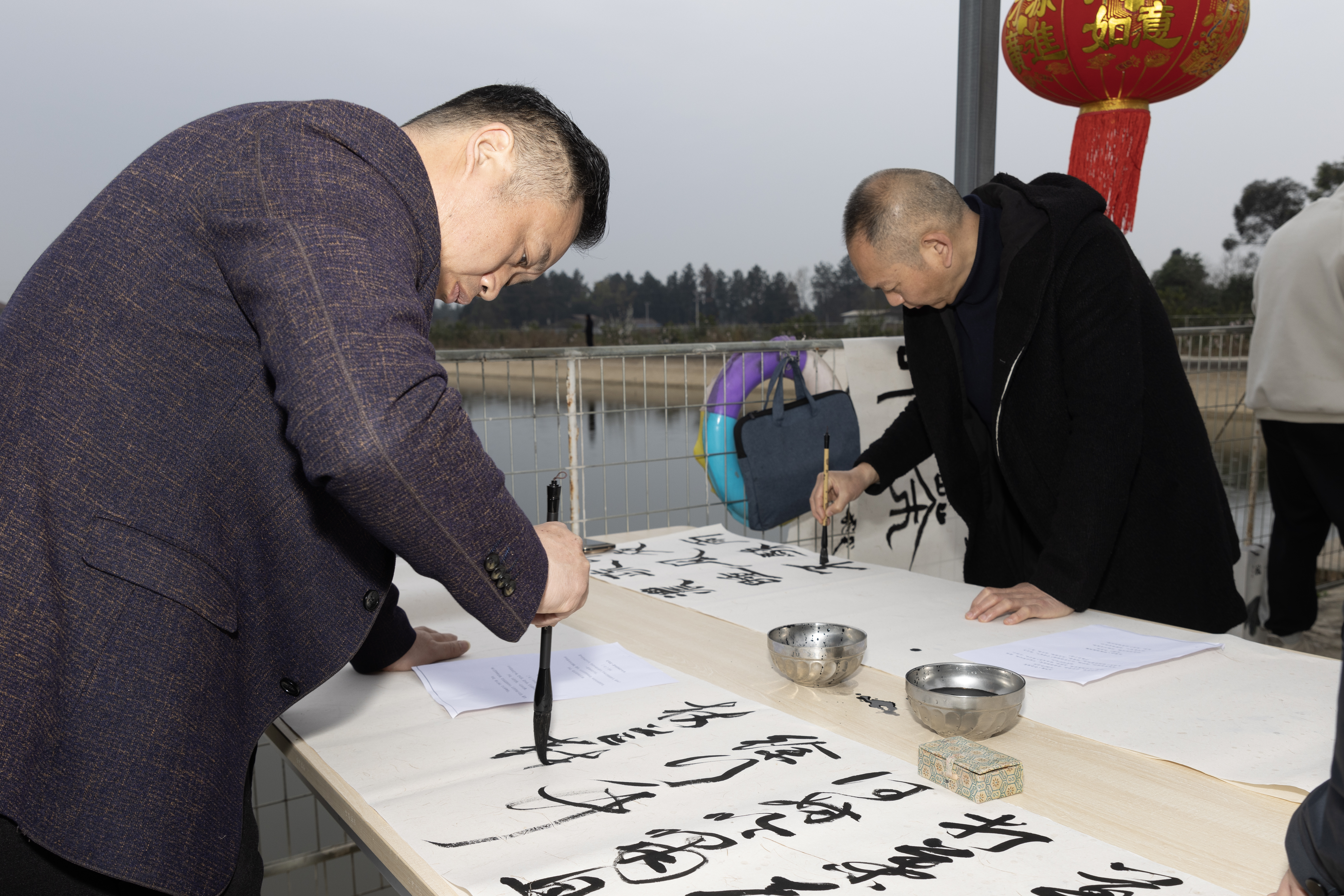 ,到蓬溪县金桥镇高坪茶园基地开展采风活动,现场挥毫泼墨,用