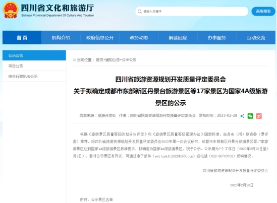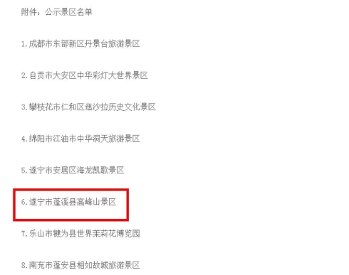 2月28日,四川省文化和旅游厅发布了《关于拟确定17家景区为国家4A级旅游景区的公示》,蓬溪县高峰山景区榜上有名。