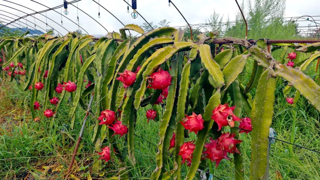 红艳饱满的火龙果挂满枝头