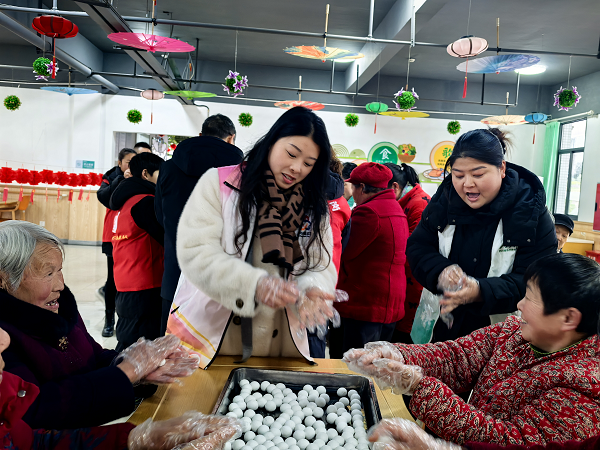 2月12日上午,大家齐聚一堂,猜灯谜、共写心愿卡,将每一张心愿卡共筑一棵心愿树,欢声笑语,尽显节日气氛。随后,大家一同动手,和、搓、揉、煮,共做幸福“同心圆”,共享社区温暖大家庭。