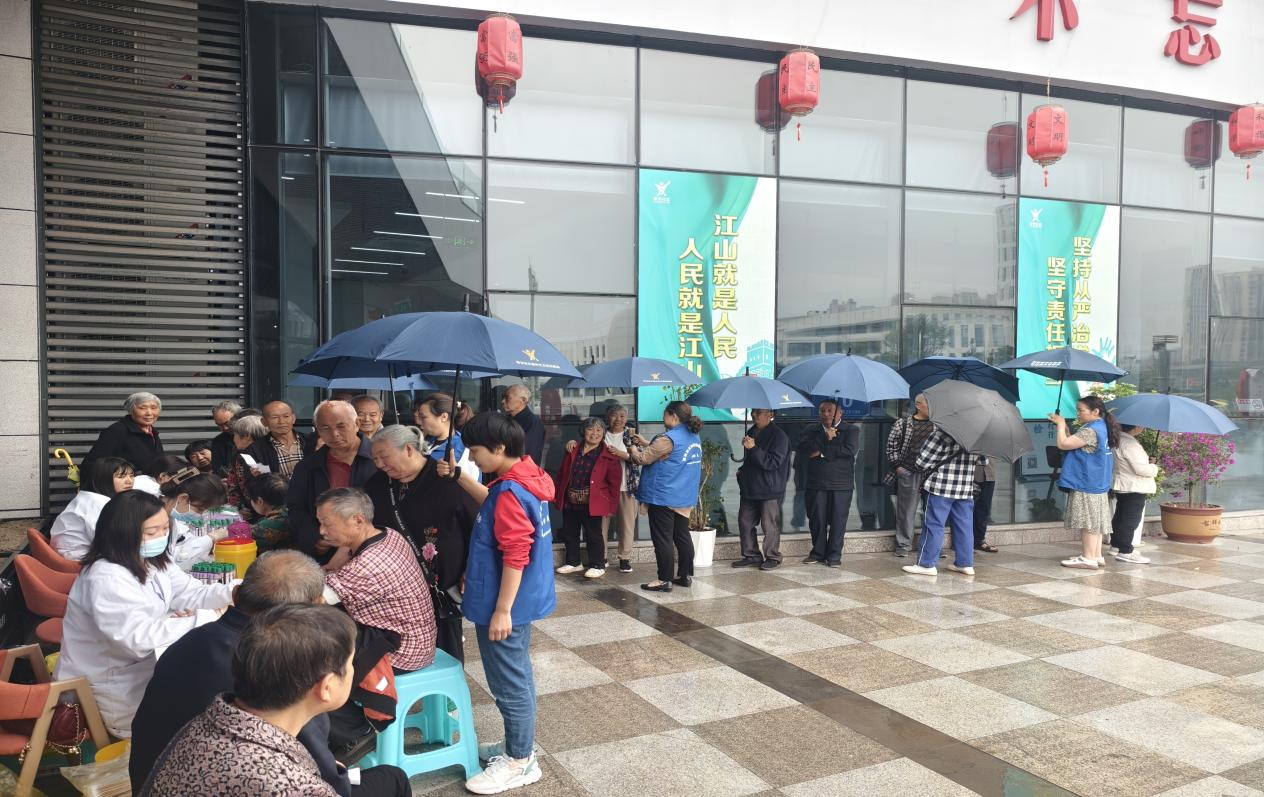 9日早上,天空下起了小雨,社区党员干部、志愿者、网格员们早早来到现场为体检活动做好准备工作,还为老人们准备了雨伞。老人们自觉排队等候体检,工作人员主动帮助行动不便的老人撑伞、以免做检查时淋湿衣服,并为他们解答有关老年人体检方面的问题。在场的老人无不感动。