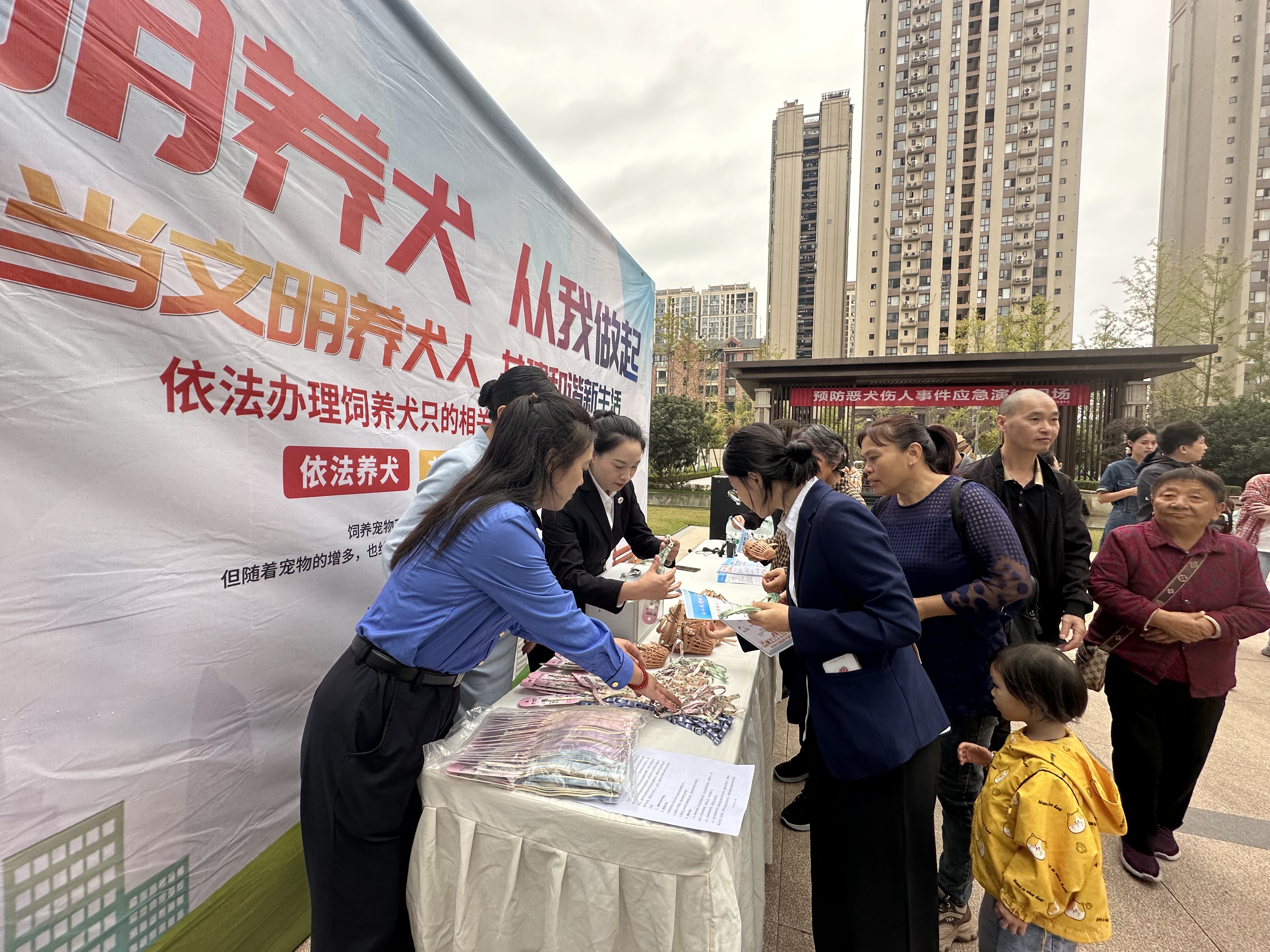 针对犬只活动集中、群众诉求较高的主次干道、公园广场、校园周边等人员密集场所,执法人员采用“面对面宣讲+精准化推送”的宣传模式,将文明养犬知识送到市民身边。通过发放《规范犬只管理告知书》《文明养犬倡议书》等宣传资料,结合典型案例讲解犬吠扰民、未拴犬链遛狗、犬只随地大小便等行为的危害及法律后果,引导养犬市民深刻认识文明养犬的必要性。同时,在社区公告栏、小区出入口、公园导视牌等位置张贴宣传海报,利用执法车辆流动广播循环播放文明养犬提示,构建“线上+线下”“固定+流动”的立体宣传网络,切实增强市民文明养犬意识。