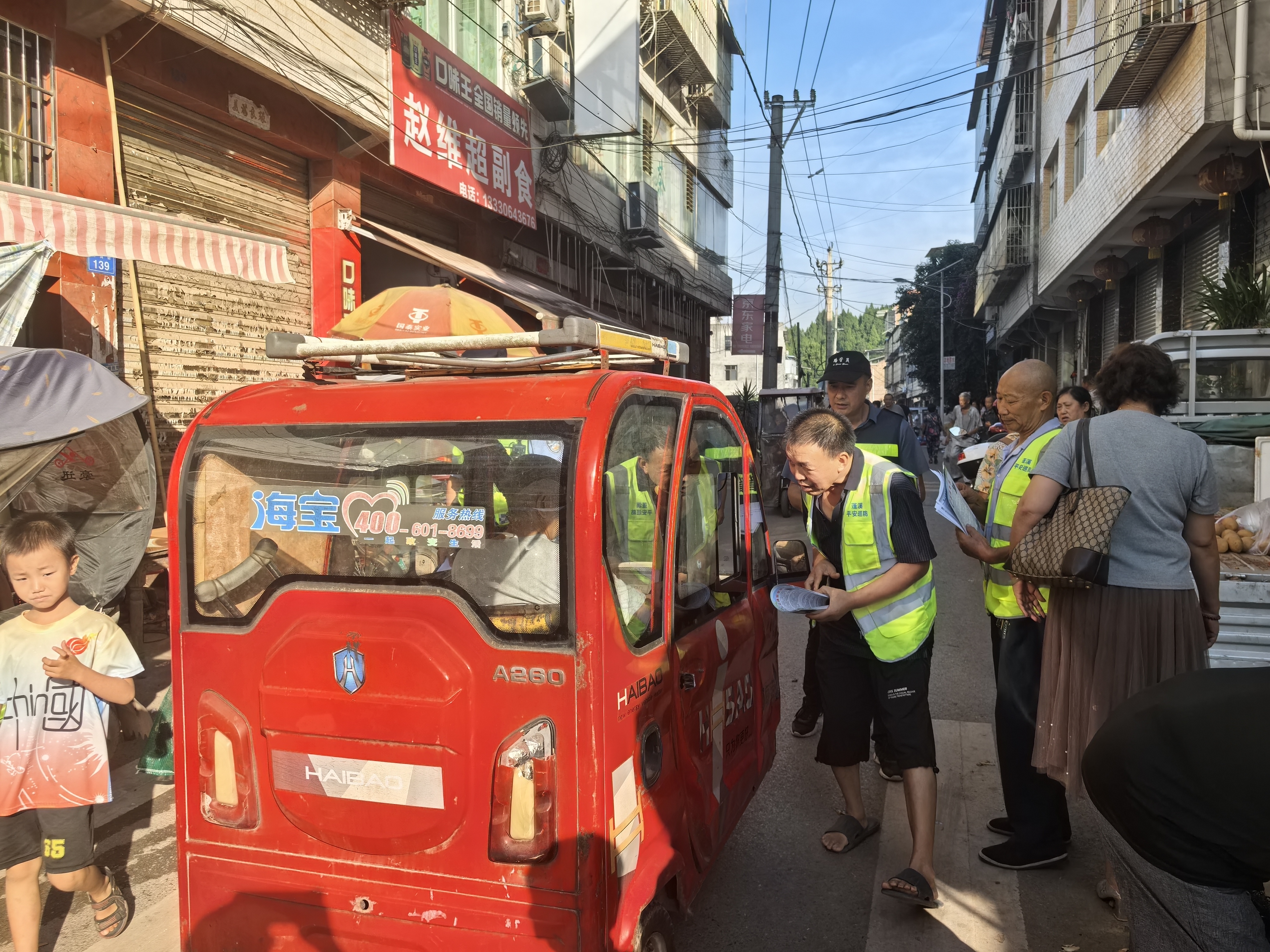 行动期间,派出所民警与镇干部深入辖区主路口、农贸市场、村社广场等三、四轮车集中区域,通过张贴反光贴、发放《致广大电动三、四轮车驾驶员的一封信》等方式,向驾驶员及群众普及无牌无证、违法载人非法改装等行为的严重危害性。同时,利用村镇广播、微信群等线上渠道,广泛传播交通安全知识,强调遵守交规的重要性,引导驾驶员自觉抵制交通陋习。在强化宣传的同时,派出所组织警力在重点路段、时段设置检查点,严查三、四轮车违法载人、涉牌涉证、不戴头盔等交通违法行为。坚持教育与处罚相结合的原则,对轻微违法以批评教育为主,督促立即整改;对严重交通违法依法予以查处,形成有力震慑,确保整治效果。多位驾驶员表示,通过民警的耐心讲解,深刻认识到安全驾驶的重要性,今后一定遵章出行。