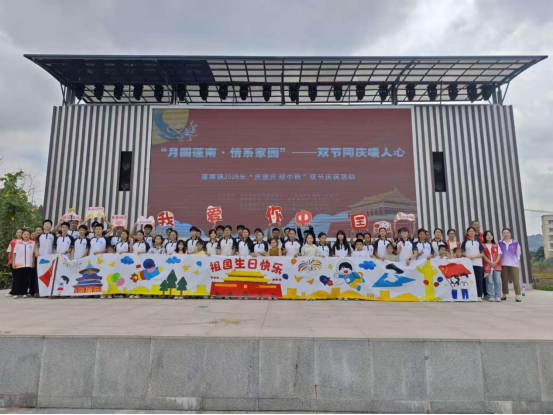 为营造欢乐祥和的节日氛围,传承中华优秀传统文化,增强全镇居民的爱国情怀与归属感,同时聚焦留守儿童群体,给予情感关怀与陪伴,让其感受节日温暖,推动形成邻里互助、共建和谐乡镇的良好氛围。9月27日,“月圆蓬南・情系家国 —— 双节同庆暖人心”活动在蓬南文化广场举行,通过文艺节目表演、爱国电影放映、与留守儿童及学生开展月饼DIY、围绕“国庆”等主题,在长卷画布上共绘国庆画卷等活动环节,表达对祖国的祝福、对家乡的热爱。